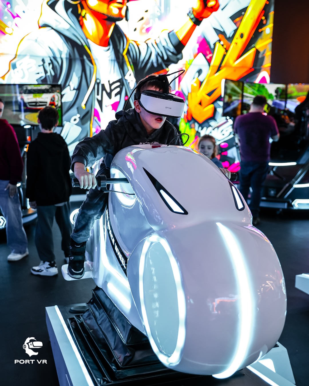 Большая площадка виртуальной реальности в PORT MALL с самыми разными видами VR: гонки, шутинги, имитация полета и многое другое. Есть одиночные типы развлечений, есть парные или командные.