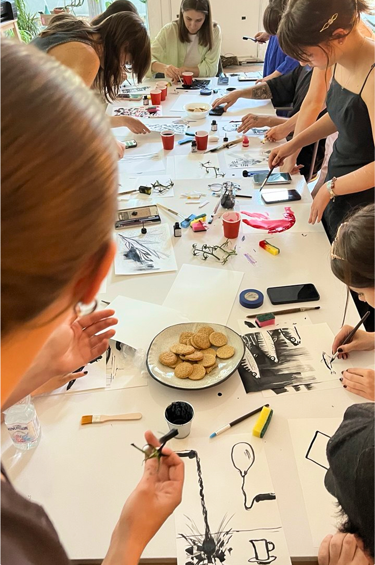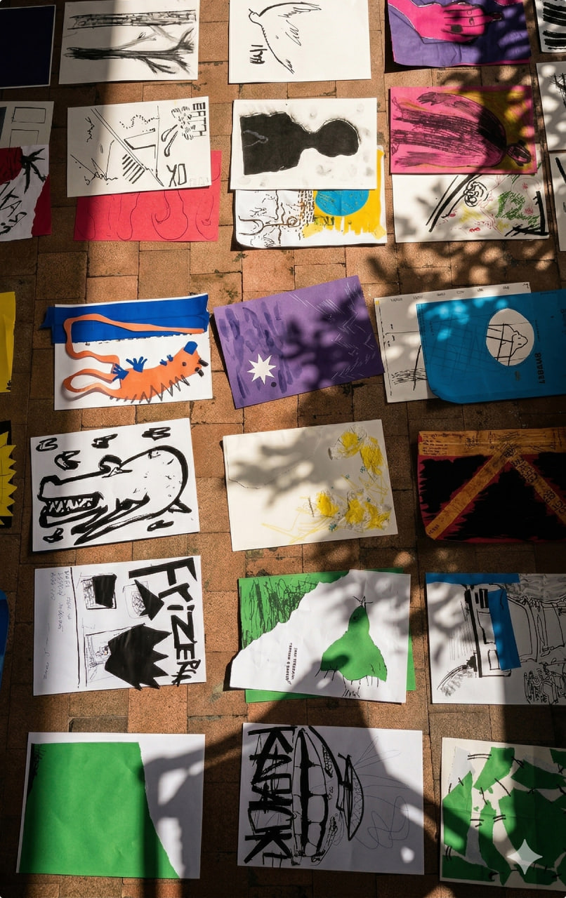 «Летом 2025 года мы запустили спонтанный плакатный воркшоп — скорее как эксперимент и живую практику, чем как формальное обучение. Нам было важно выйти за пределы привычных дизайнерских подходов: участники работали с нестандартными инструментами, пробовали странные и иногда даже "неудобные" техники, внимательно рассматривали и обсуждали работы известных плакатистов. В результате у ребят получались свободные, экспрессивные и очень личные плакаты.