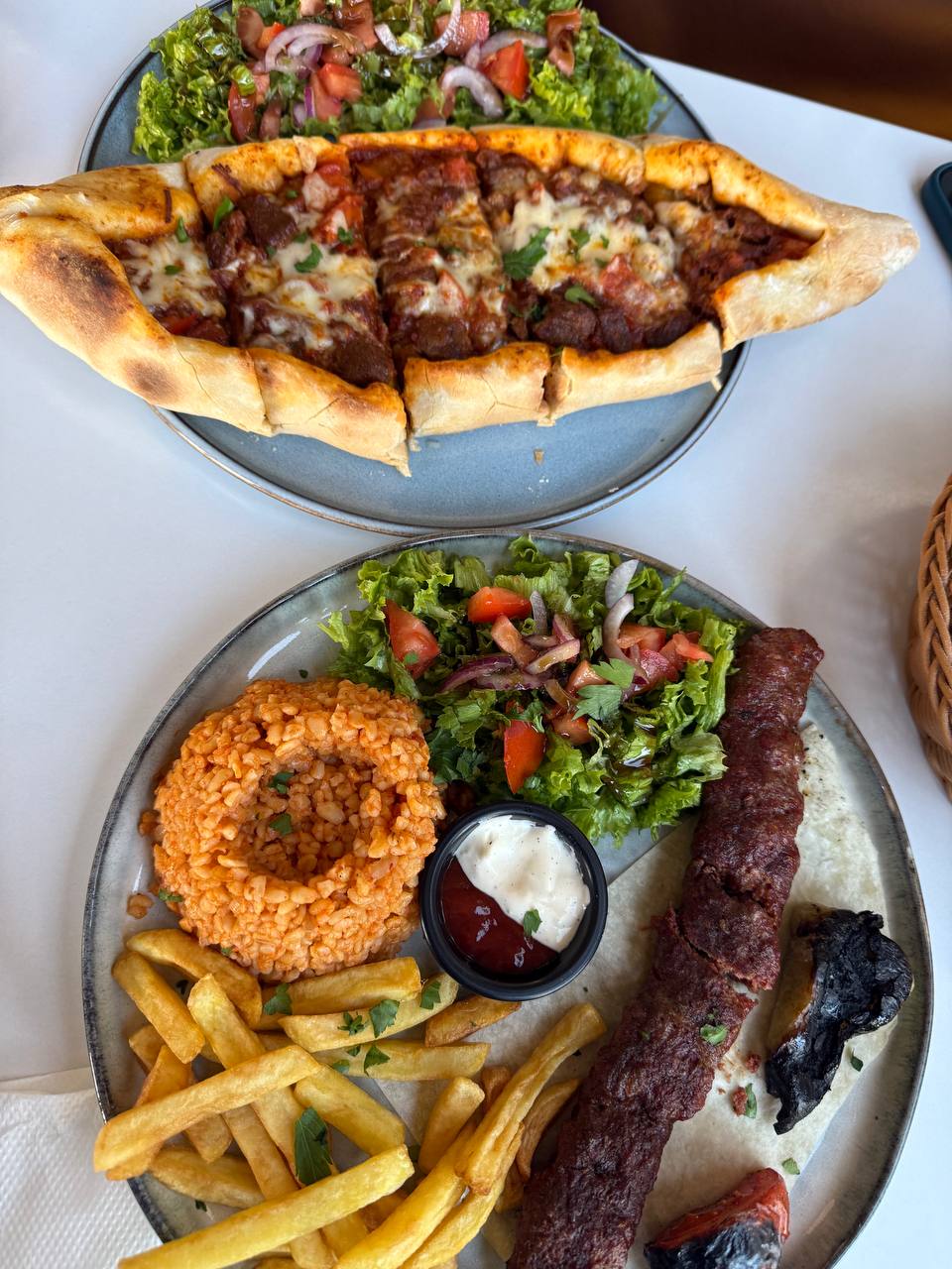 Зал небольшой, но уютный. Меню охватывает классические позиции турецкой кухни: супы, мясные блюда, кебабы, пиде, салаты, закуски и завтраки. Как и принято в Турции, порции здесь щедрые, а перед подачей основных блюд гостям приносят закуски со свежеиспеченными лепешками.