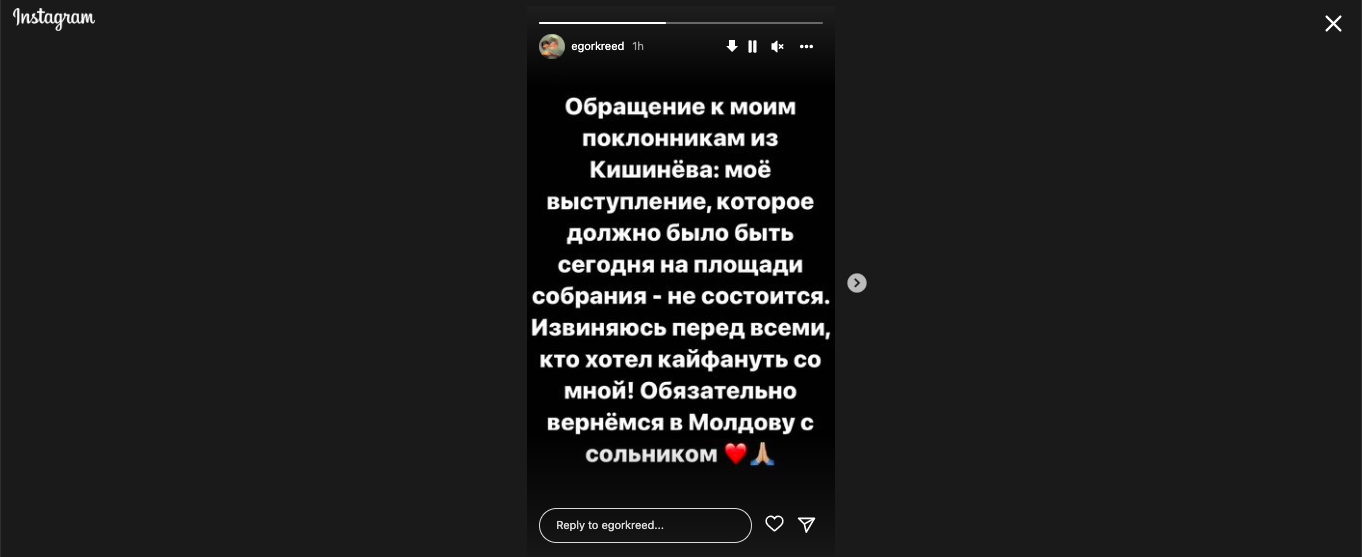 КишинёвЕгор Крид отказался выступать на центральной площади Кишинёва