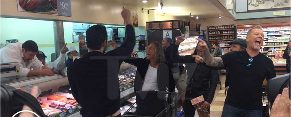 Музыканты рок-группы Metallica исполнили свою песню «Enter Sandman» в одном из голливудских супермаркетов сети Gelson