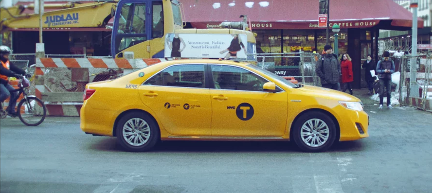 Минутная зарисовка типичного Нью-Йорка — такси, спешащие люди и пресловутый Старбакс.