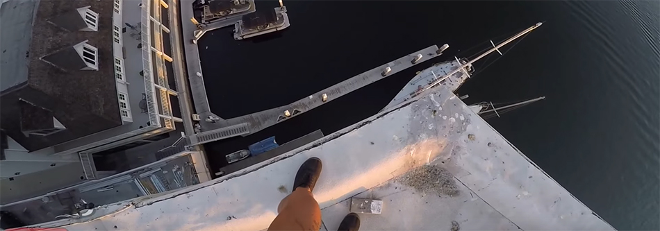 switterЭкстремал снял на камеру прыжок с крыши 40-метрового здания