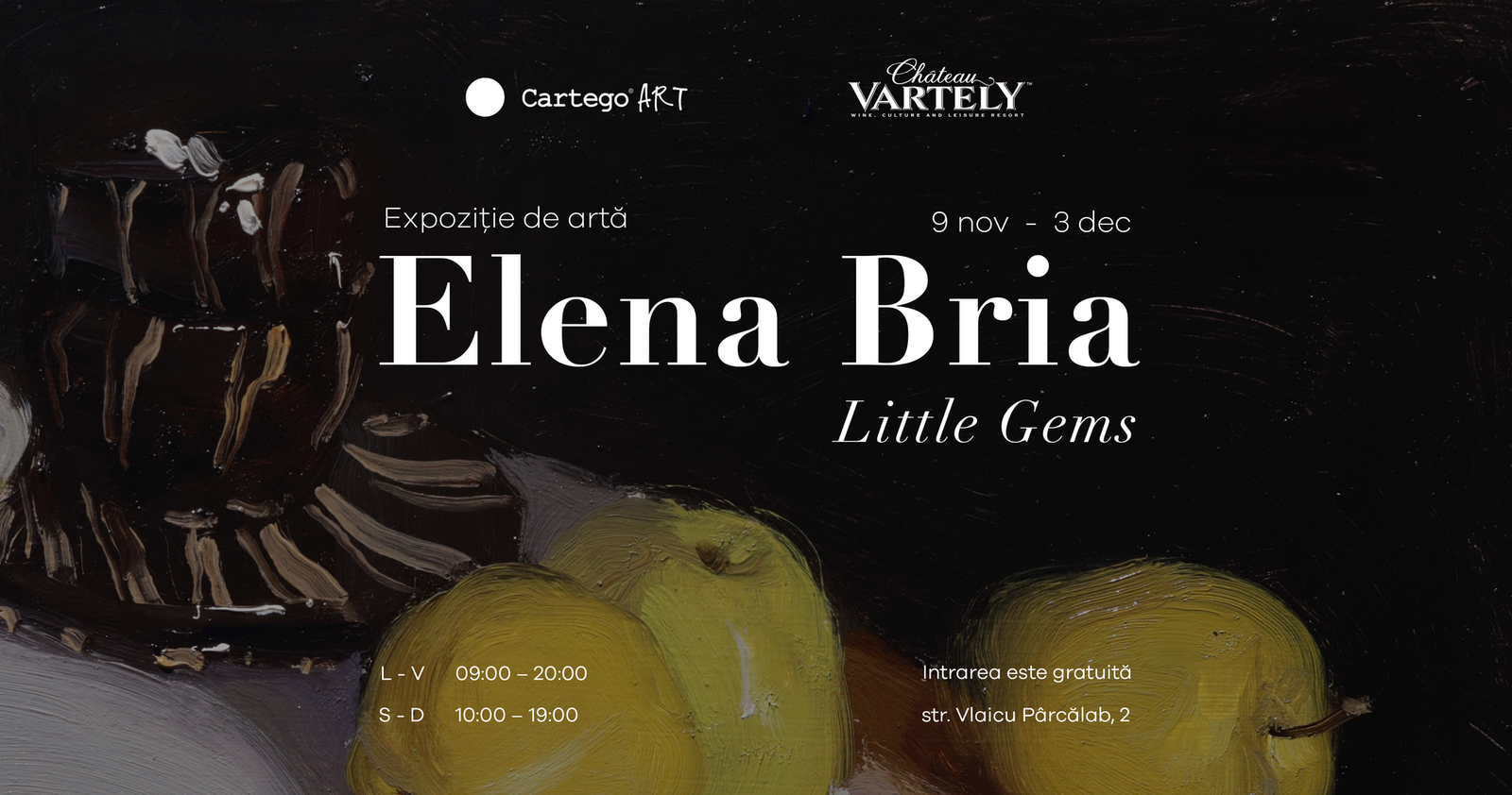 событияCartego Bookstore & Art Gallery vă prezintă expoziția „LITTLE GEMS" semnată de Elena Bria.