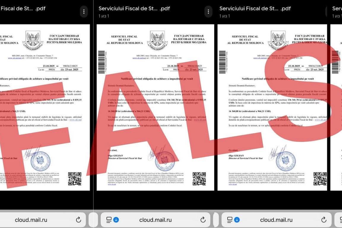 молдоваНалоговая служба Молдовы предупреждает о мошеннических сообщениях о штрафах в размере 20 000 леев